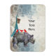 Easily personalise this pretty romantic blue floral garden collage of a funny cute vintage rhino and Eiffel tower Paris with your name, text or monogram initials,. Visit the VINTAGE PRINTS STORE for matching products. CLICK CUSTOMIZE to adjust the text size, position, colour or font.
