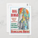 This postcard is a reproduction of a vintage lithograph advertisement for the Ringling Bros circus and Big Bingo, the "biggest brute that breathes," a "giant two-story elephant" who is part of the show.