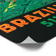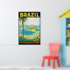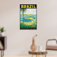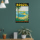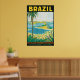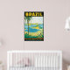 Brazilian Information Bureau travel poster. Produced in New York for Brasil tourism. A retro graphic style. Showing Guanabara Bay and Sugarloaf Mountain from above. Vintage advertising for your wall.
