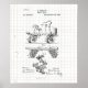 Vintage illustration for 1880s Roller Skate patent. Drawing overlay on grid paper background