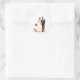 Includes 20 small stickers on one sheet. Elegant illustration of a bride and groom holding hands, perfect for wedding-themed decorations and messages.