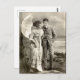 This elegant black-and-white vintage photograph captures a romantic moment between a well-dressed couple beneath a parasol, likely from the early 1900s. Featuring Edwardian-era fashion and timeless charm, it evokes the sweet nostalgia of old-world romance. Perfect for lovers of antique photography, historical decor, and classic romantic imagery