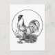 Stylish, intricate vintage rooster etching from the 19th century, with a black and white bird standing on tufts of grass and pebbles with two smaller chicken standing in the background. Cleaned up to decorate any item in a stylish and modern way. Add your own text to this lovely hen if you please or just enjoy the detailed black and white Victorian art.