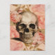 This sweetly dark design features a collage of vintage art including an anatomical drawing of a skull and a botanical illustration of pink roses.