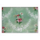 Vintage Victorian wallpaper design with a light green background and a lace floral embroidery and a flower bouquet.