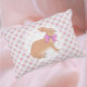 Vintage style little pink roses are the background for this cute bunny on a lacy doily. Charming in a baby nursery or child’s bedroom. Perfect for your Shabby Chic, Country French, Farmhouse, Cottage style and more décor.