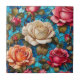 Vintage Roses on Blue Mosaic Background Ceramic Tile