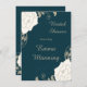 White vintage roses and light brown swirls on a dark teal background Bridal Shower Invitation.