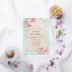 This romantic and elegant wedding invitation features a vintage floral design with real rose gold foil. Pink and blush roses with glitter accents are placed in opposite corners. The background is a faded teal parchment pattern.