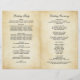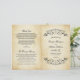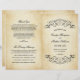 Decorative black swirls and flourishes frame this elegant vintage typography wedding ceremony sheet program design. The rustic ivory background is printed with a textured aged parchment paper appearance. Personalise the custom text for your bridal party, ceremony information, and thank you message. Note: these text weight paper programs arrive flat and require folding to assemble.
