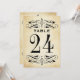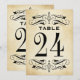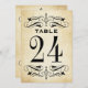 Vintage style wedding table number cards feature decorative swirls and flourishes on both sides of the card. Rustic antique textured background look with black design. Personalise each table number card that you need and add each to your cart individually.