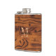 Vintage rustic brown burnt wood Monogram Hip Flask