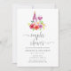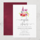Vintage style flowers couples shower wine tasting invitation with hues of burgundy, blush and sage green designed to be quickly and easily customised to your event specifics.