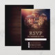 Elegant RSVP card featuring a beautiful castle against a rustic barn wood background.