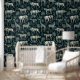 Transform your space with this vintage safari-themed wallpaper! Featuring majestic African animals—zebra, lion, elephant, cheetah, ostrich, giraffe, and rhino—set against a rich dark teal green background, this design brings the wild to your walls. Perfect for adding a bold, adventurous touch to any room!