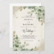 This design features a beautifully rendered botanical arrangement in soft sage green hues, evoking a sense of natural elegance. Lush foliage and delicate floral accents create a charming, timeless aesthetic perfect for a romantic celebration. The earthy tones and painterly style lend a vintage feel to this special occasion.