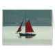 A a red sailed vintage yacht sails across Cardiff Bay.