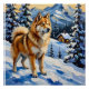 A breathtaking vintage-style Christmas painting of a Samoyed in a snowy alpine setting. With glowing cabins and frosted pines, this artwork exudes classic winter beauty and festive charm.