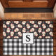 Welcome your guests in festive style with this vintage Santa Claus monogrammed Christmas doormat. Featuring a charming retro Santa design paired with a classic black gingham pattern, this doormat can be personalised with your initial for a unique holiday touch. Add a nostalgic and warm greeting to your entryway, making it perfect for creating a cosy holiday atmosphere.