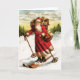 Restored early 20th century vintage Christmas card featuring Santa Claus on skis. Text reads "Happy Christmas". If required you can add printed text to the inside page by using the customise button.