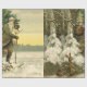 It's Christmas! For a very old fashioned holiday, this vintage image is from a Victorian postcard, showing Santa claus with his brand new Christmas tree.