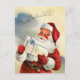 Customisable Vintage Santa Claus holding a gift Christmas postcard.