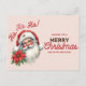 This festive illustration features a cheerful vintage-style Santa Claus with rosy cheeks, a fluffy white beard, and a bright red hat, smiling warmly beside a poinsettia flower. The text “Ho, Ho, Ho! Wishing You a Merry Christmas and Happy New Year!” adds a joyful holiday spirit. Perfect for Christmas cards, festive decorations, or holiday merchandise.