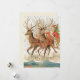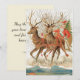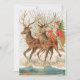 Vintage Santa Claus Sleigh And Reindeer Flying Holiday Card