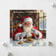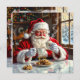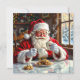 A sweet vintage Santa Claus eating chocolate chip cookies and drinking hot cocoa and coffee at the kitchen table that someone left out for him. On the back is a cute holiday poem that you can leave, personalize and add your names to.
