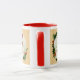 White and red 11 oz. combo mug with a vintage image, on both sides, of jolly old St. Nick on gradated green snowfall in an ecru frame adorned with holly and the sentiment “A Merry Christmas” in red script. See matching candy jar, espresso cup, flask, pitcher, paper plate, shot glass, teapot and coasters. See the entire Holiday Mug collection in the FOOD/BEV | Dishes section.