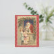 This cute custom vintage postcard features two little girls greeting Santa at the window. Santa is showing the little girl standing on the chair a pretty doll inside of a beautiful antique car. This beautiful Christmas vintage image is set against a red snowy background and displays "Merry Christmas" in the bottom right corner.