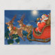Vintage Santa Sleigh Reindeer Holiday Postcard. Beautiful vintage Christmas Santa postcard. This design features Santa Claus in his sleigh guiding his reindeer through a moonlit night sky. What a beautiful holiday scene.