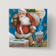 Santa at chimney with a smilling moon in the background from a vintage Christmas card.