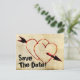 Romantic old fashioned vintage style look "Save The Date" postcards with two red hearts and arrow. Matching grungy text can easily be changed and personalised. Great for upcoming weddings, engagement, anniversary parties, etc. Back can also be personalised with more text or left blank.