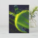 Vintage illustration futuristic Science Fiction planets and outer space image. A spaceship flying around a neon green planet's atmosphere with many asteroids and stars in the sky in the future. A classic 50s retro sci fi comic book design.