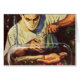 Vintage illustration futuristic Science Fiction laboratory image with a mad scientist experimenting on a miniature human being. The crazy scientist is mixing an elixir potion to awaken the robot male sleeping beauty in his lab. A classic 50s retro sci fi comic book design.
