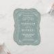 A lovely vintage-themed succulent green wedding invitation that incorporates charming typography and scrolling frames and banners to highlight your wedding celebration. Perfect for any summer wedding, it's especially suited to a succulent floral theme; the white text on the grey-green background makes a modern, yet vintage statement. Lovely curving text adds interest and makes your details stand out. Look for all our coordinating "Vintage Scroll" products such as wedding programs, menus, response cards, seating cards, table number cards, stickers, gift boxes, napkins, address labels and postage - everything you need to create a beautiful matching ensemble for your entire wedding celebration.