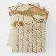 This vintage-inspired design showcases seahorses on a tan background with cursive script writing. Perfect for decoupage artwork, paper crafts, or wrapping gifts.