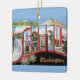 A vintage postcard greeting from Washington State repurposed on an ornament. Keep the image on the back or remove it and add your personal message.