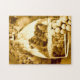 Vintage Sepia Wine Glass and Grapes Jigsaw Puzzle