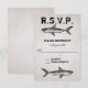 ~Vintage Shark Beach Wedding RSVP Cards in Shades of Black, White and Grey with a Vintage Style Background.
