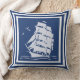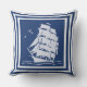 Vintage Ship, Reversible Cotton Throw Pillow, navy Cushion