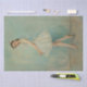 This watercolor painting features a full-body portrait of a young ballerina. She stands poised in an elegant, light blue tutu, with delicate lace accents.