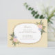 Elegant wedding invitation illustrated with a whimsical oval frame and watercolor flowers in peach pink, delicate yellow and sweet blue. Dark green leaves and twigs, together with a couple's silhouette inspired by vintage cameos are married with fancy script font. This design can be easily customised and the background can be changed to match the colour of your preference.