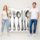 Elevate your space with timeless elegance! This sophisticated illustration showcases a classic arrangement of ornate silver flatware including forks, spoons, and knives rendered in detailed monochrome with intricate floral engravings on the handles. The vintage watercolor style and subtle shading create a refined, nostalgic mood that's perfect for adding a touch of heritage charm to any kitchen or dining area.