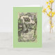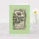 A vintage illustration of a frog sitting with a songbook in his lap. His eyes are turned upward and he's raising one arm into the air as he sings out loud with great passion. He's surrounded by a border of lily pads. The verse on the front of the card says, "If you must sing, Sing a solo - so low!" The inside of the card is blank for your own message.