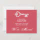A simple and elegant way to keep in touch with family and friends. White vintage skeleton key on a red/coral background.