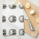 Kitchen towel printed with the vintage image of a drawn human skull.