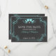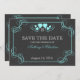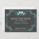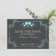 Save the Date with this black and turquoise vintage slate look announcement. Change text and monogram as needed. Contact this designer for other colour options.