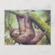 Vintage sloth illustration, a sloth animal hanging in a tree in the jungle.